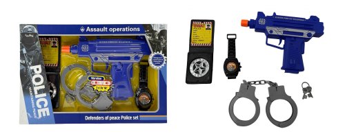 Parádní pistole: Když zmáčkneš spoušť, bude to jako opravdová střelba. A víš co? Ona dokonce i trochu zavibruje, takže to bude jako fakt. Jako když střílí pravý policajt! Pouta pro zloděje: Když chytíš nějakého padoucha, můžeš ho dát do poutek! Ale neboj, máš k nim i klíček, abys ho pak mohl zase pustit, až si bude chtít hrát dál. Pravé hodinky: Abys věděl, kolik je hodin, když jsi na tajné misi a potřebuješ chytit zloděje včas. Policejní odznak: Každý hned uvidí, že jsi statečný policajt nebo policistka, co chrání město. S touhle sadou můžeš zachránit celý svět, chytat zloděje a být ten nejstatečnější policajt v okolí. Je to super hračka, se kterou si užiješ spoustu zábavy a dobrodružství!