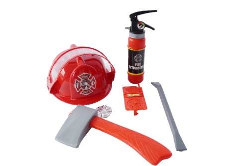 Sada obsahuje základní pomůcky opravdového hasiče. Helma se štítem na oči, sekyru, telefon, hasící přístroj, odznak….