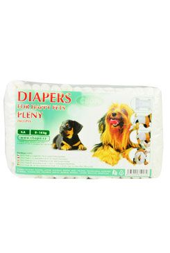 Jednorázová absorbční plena pro psy, zejména štěňata, háravé feny, nemocné psy atp. vhodná na cesty, v domácnosti či pobytu na zahradě, v noci či ve dne. Pleny jsou vyrobeny tak, aby byly pohodlné a nijak nebránili v pohybu. Jemná a měkká povrchová vrstva z netkaného textilu odvádí rychle vlhkost. Mimořádně savý materiál vstřebává rychle tekutinu a vnější folie spolehlivě chrání před prosáknutím. Plena se lehko nasazuje díky upínacím páskům, které jsou upraveny tak, aby se nezachytávaly srst mazlíčka