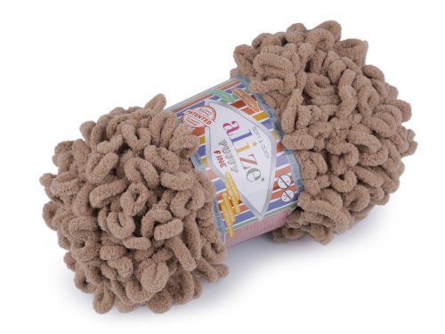Příze Alize Puffy Fine je měkká, chlupatá žinylková příze s velkými očky. Na pletení nepotřebujete jehlice ani háček - proplétají se jednotlivá očka. Je vhodná na pletení dek, šálů apod. Přibližná spotřeba na deku o rozměrech 100 x 100 cm jsou 3 klubíčka. Přibližná spotřeba na šálu je 1 klubíčko.