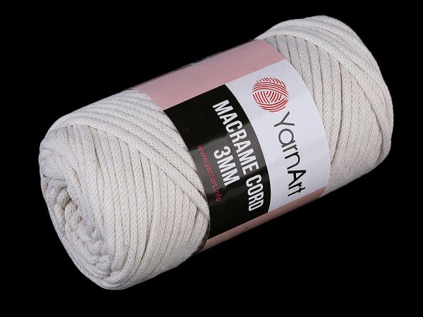 Příze Macrame Cord připomíná provázek. Využijete ji na pletení nebo háčkování pufů, košíků, koberečků i tašek.