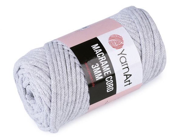 Příze Macrame Cord připomíná provázek. Využijete ji na pletení nebo háčkování pufů, košíků, koberečků i tašek.