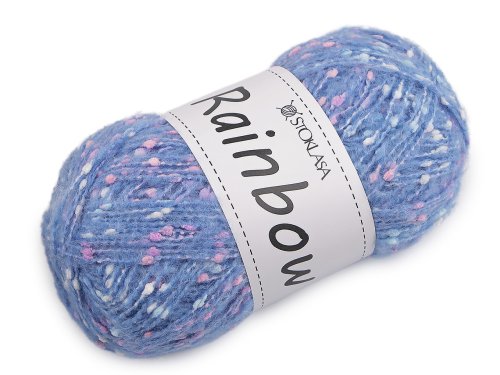 Příze Rainbow s vysokým podílem mohéru a vlny vás v chladném období zahřeje. Efektně na ní vypadají drobné barevné bambulky z žinylky. Přízi využijete na pletení či háčkování svetrů, šálů, ponožek nebo čepic. Velikost jehlic: 5 - 6 Velikost háčku: 5 - 6 Pokud přízi budete párat, je nutné postupovat velice opatrně, aby se nepoškodila. Před pletením / háčkováním doporučujeme udělat zkušební vzorek.