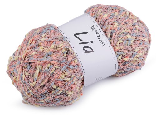 Příze Lia zaujme pozornost drobnými nopky, které dodají hotovému výrobku originalitu. Můžete z ní uplést šály, svetříky, vesty apod. Velikost jehlic: 3 - 4 Pokud přízi budete párat, je nutné postupovat velice opatrně, aby se nepoškodila. Před pletením doporučujeme udělat zkušební vzorek.