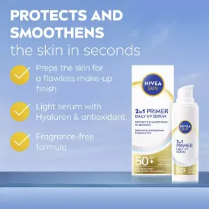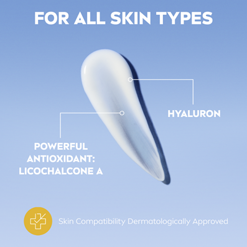 Zkraťte svou ranní rutinu bez kompromisů – tohle sérum je nejen vysoce účinným opalovacím přípravkem, ale i skvělým podkladem pod make-up. Jeho lehká textura se okamžitě vstřebává, nelepí, nemastí a nezanechává bílé stopy. Pleť chrání před UVA a UVB zářením díky SPF 50+. Zároveň pleť sjednocuje, vyhlazuje a intenzivně hydratuje. Obsahuje kyselinu hyaluronovou, která pokožku hydratuje jak na povrchu, tak do hloubky, zatímco antioxidant licochalcon A chrání před oxidačním stresem. Sérum je vhodné i pro citlivou oblast kolem očí, neparfemované a dermatologicky i oftalmologicky testované.