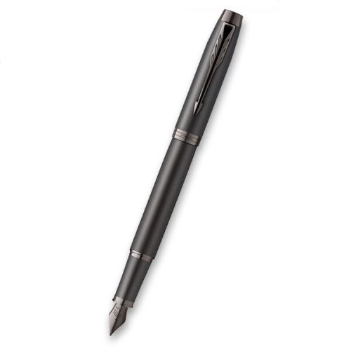 Plnicí pero:, * nasazovací víčko, * hrot z nerezové oceli zdobený jemnou rytinou, potažený leskle titanovou vrstvou , * přizpůsobeno výhradně k používání inkoustových bombiček Quink nebo konvertoru (není součástí balení), Dodáváno s modrou bombičkou, v elegantním dárkovém balení., V řadě IM Monochrome Parker opět využívá technologii PVD. Díky módnímu monochromatickému provedení a modernímu matnému designu je Parker IM Monochrome ideálním doplňkem pro mladou, generaci. Je elegantní i vysoce profesionální a spolehlivý., JAK SE LIŠÍ HROTY F A M?, F - Slabý hrot (Fine) - Vhodný pro běžné psaní a poznámky. Mírný tlak vytváří jemnou linku. Velmi oblíbený, vhodný pro uživatele se standardním rukopisem., M - Střední hrot (Medium) - Průměrný tlak a šíře linky. Vhodný pro uživatele, kteří mají rádi maličko silnější linku.,