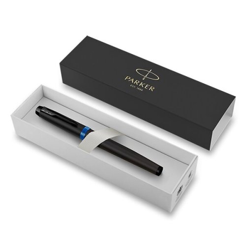 Plnicí pero:, * nasazovací víčko, * hrot z nerezové oceli zdobený jemnou rytinou, * dvoukanálkový systém zásobování hrotu inkoustem, * přizpůsobeno výhradně k používání inkoustových bombiček Quink nebo konvertoru (není součástí balení), Dodáváno s modrou bombičkou, v elegantním dárkovém balení., Parker IM Professionals je ideální partner s neomezenými možnostmi. Je elegantní i vysoce profesionální a spolehlivý. Nabízí odolný hrot z ušlechtilé nerezové oceli, sebevědomé, barevné provedení s výrazným barevným akcentem, uživatelské pohodlí i maximální výkonnost., JAK SE LIŠÍ HROTY F A M?, F - Slabý hrot (Fine) - Vhodný pro běžné psaní a poznámky. Mírný tlak vytváří jemnou linku. Velmi oblíbený, vhodný pro uživatele se standardním rukopisem., M - Střední hrot (Medium) - Průměrný tlak a šíře linky. Vhodný pro uživatele, kteří mají rádi maličko silnější linku.