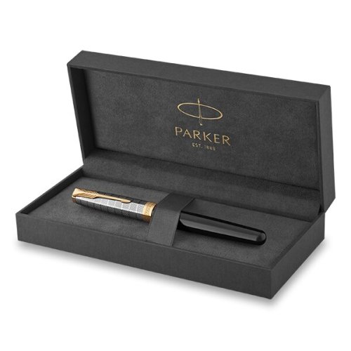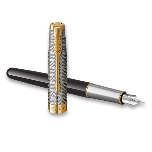 Plnicí pero:, * nasazovací víčko, * standardní konvertor s pístem pro plnění pera inkoustem Quink z lahvičky, * možnost používat i inkoustové bombičky Quink, Vyrobeno ve Francii. Dodáváno s 2 černými bombičkami, v elegantním dárkovém balení., TIP: K plnicímu peru byste mohli využít konvertory Parker s lahvičkovým inkoustem nebo inkoustové bombičky Quink., Nadčasová elegance modelu Sonnet, jeho vytříbený styl i rozmanité povrchové úpravy skvěle navazují na designérskou tradici značky Parker. Sonnet je dokonalým zosobněním všeho, co, Parker umí nejlépe – mistrovského zpracování hrotů z 18karátového zlata, ideálního rozložení hmotnosti pera i pečlivého sestavení jednotlivých, celkem 17 různých dílů. Modelová, řada Sonnet je skutečně nadčasová a zároveň vždy aktuální., , TIP: JAK VYČISTIT PLNICÍ PERO?, JAK SE LIŠÍ HROTY F A M?, F - Slabý hrot (Fine) - Vhodný pro běžné psaní a poznámky. Mírný tlak vytváří jemnou linku. Velmi oblíbený, vhodný pro uživatele se standardním rukopisem., M - Střední hrot (Medium) - Průměrný tlak a šíře linky. Vhodný pro uživatele, kteří mají rádi maličko silnější linku.