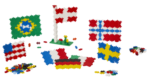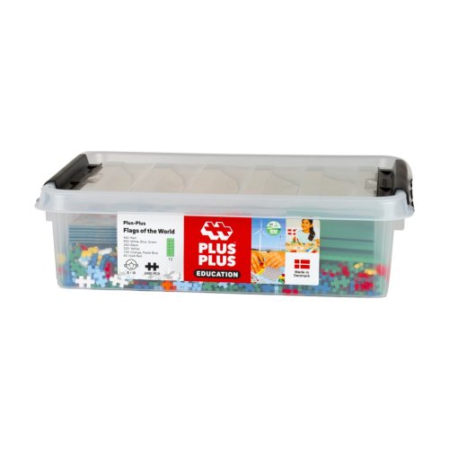 Praktický úložný box obsahuje 2400 dílků Plus-Plus a 12 zelených podložek. Součástí je i brožura s konkrétními šablonami vlajek a úkoly pro děti. Vyrobeno v Dánsku, bez ftalátů, recyklovaný plast, snadná údržba. Rozměr boxu 40×30×13 cm. Ideální pro kolektivy. Vhodné od 5 let.