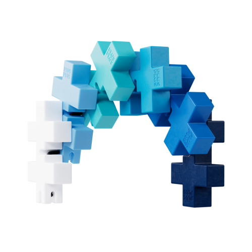 Plus-Plus Hexel Waterfall je originální fidget hračka složená ze šesti dílků Plus-Plus BIG, které jsou vzájemně propojeny pružnou gumičkou. Díky této konstrukci je možné jednotlivé dílky snadno ohýbat a vytvářet různé tvary a struktury, což umožňuje mnoho hodin kreativní zábavy a zároveň působí jako efektivní antistresová pomůcka. Barevné provedení kombinuje odstíny modré včetně tmavě modré, tyrkysové a světle modré s bílou, což evokuje dojem vodopádu a vyvolává příjemný vizuální efekt.