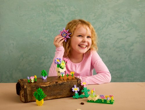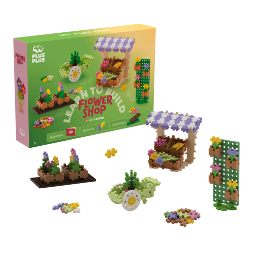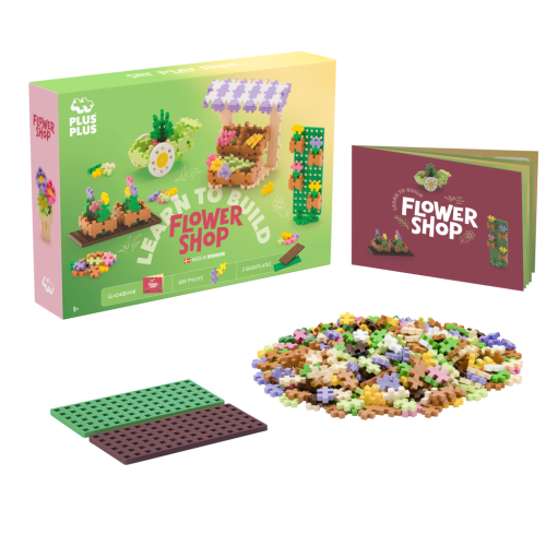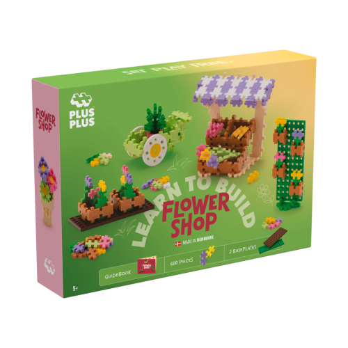 Plus-Plus Nauč se stavět Květinářství obsahuje 600 pestrobarevných dílků včetně dvou podložek. Pomocí přiložené brožurky můžete snadno postavit stánek, vozíček nebo květinové aranžmá. Podle fantazie ale i cokoliv jiného. Vyrobeno v Dánsku, bez ftalátů, recyklovaný plast, snadná údržba. Vhodné od 5 let.