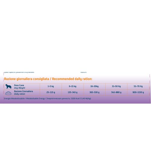 Složení: dehydrované živočišné bílkoviny 30 % (z toho jehněčí 4 %), tvrdá pšenice, kukuřice, rýže, oleje a tuky, karob, vitamíny a minerály.