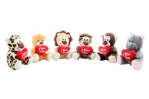 Plyšové divoké zvířátko se srdíčkem o rozměrech cca 14x13x11 cm. 6 druhů - dodáváme dle skladové dostupnosti. Věk 0+