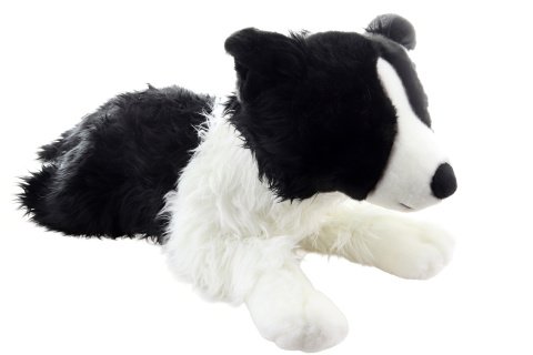 Plyšový pes Boredr kolie s postrojem ležící o rozměru cca 70 x 26 x 20 cm. Věk 0+