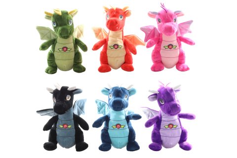 Plyš drak zvukový o velikosti cca 20 cm.Po zmáčknutí drak vydává zvuk.Provoz na 3 knoflíkové baterie..Věk 0+