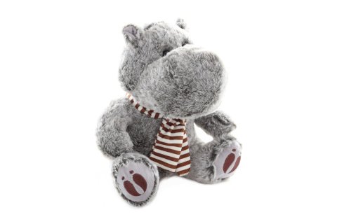 Plyšový hroch o rozměrech 19x25x16 cm.