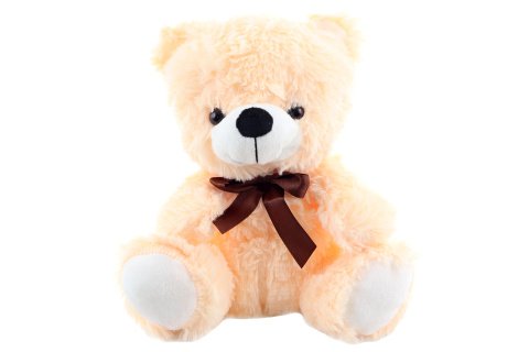 Plyšový medvěd s mašlí o rozměru cca 20 x 25 x 15 cm. Věk 0+
