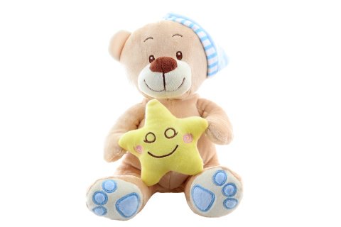 Plyšový medvídek s hvězdičkou o rozměrech 23x15x18 cm. Věk 0+