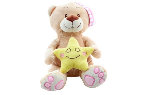 Plyšový medvídek růžový s hvězdičkou o rozměrech 23x18x14 cm. Věk 0+