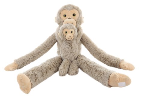 Plyšová opice s mládětem o velikosti cca 82 x 28 x 15 cm. Opice i mládě mají na rukách suchý zip. Mládě lze zcela oddělat. Věk 0+