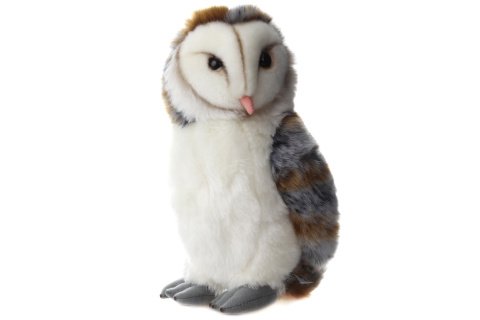 Plyšová sova o velikosti cca 27 x 14 x 16 cm.