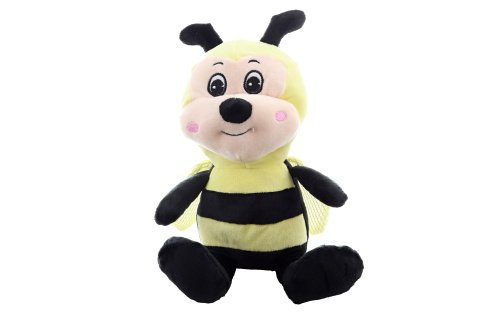 Plyšová včelka o rozměrech 23x15x12 cm.