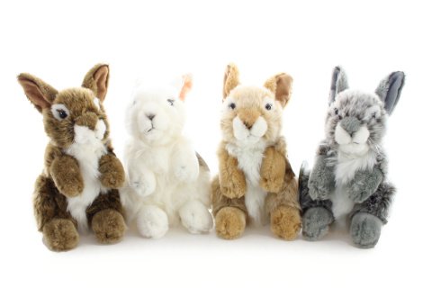 Plyšový sedící zajíček o velikosti cca 20 x 11 x 10 cm. Věk 0+