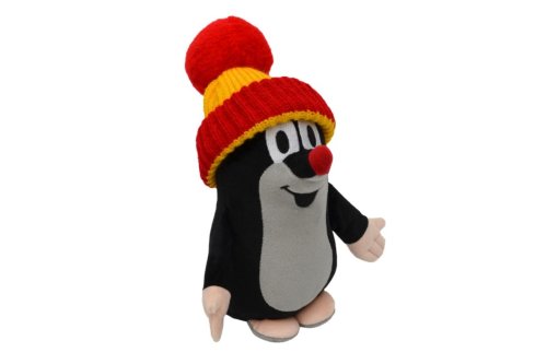 Plyšový Krteček s pletenou sundavací čepicí. Hračka je ve spodní části naplněna "antistresovými fazolkami" pro stabilizaci polohy a rozvoj citu a hmatu dětí. Rozměry balení 23 x 28 x 15 cm. Vhodné pro děti od 0 měsíců.