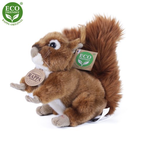 Krásná plyšová veverka nesmí chybět v žádném dětském pokojíčku. Veverka o velikosti 17 cm je vyrobena z velmi kvalitního plyše a je součástí exkluzivní kolekce plyšových hraček RAPPA. Hračka je ECO-FRIENDLY. Výplň plyšové hračky je vyrobena z recyklovaných PET lahví. Tento materiál je zcela bezpečný, na omak nerozeznatelný od standartní výplně a plně atestovaný pro bezpečnost i těch nejmenších dětí. Rozhodli jsme se jít zelenou cestou co nejméně zatěžující životní prostředí – cestou ECO-FRIENDLY. Rozměry hračky: 17 x 10 x 18 cm. Věk: 0+
