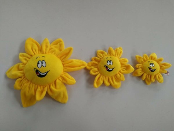 Plyšové usměvavé sluníčko o velikosti 20 cm. Vyrobeno z jemné plyše.