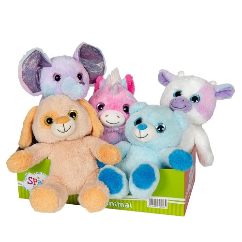 Roztomilá plyšová zvířátka s třpytivýma očima – v šesti variantách – pejsek, slon, medvěd, jednorožec, kravička a kočička. Vyrobeno z jemného a kvalitního plyše. Velisot zvířátka 23 cm.