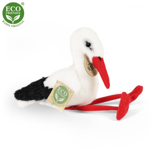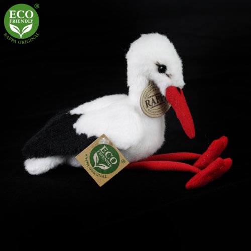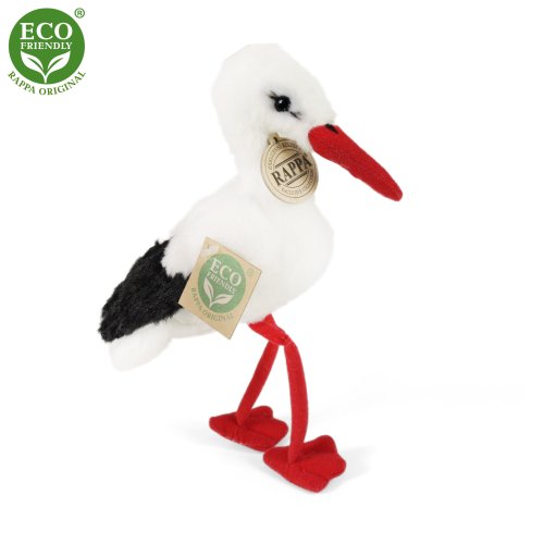 Krásný plyšový čáp ve velikosti 14 cm je vyrobený z vysoce kvalitní plyše, ručně šitý a je tak součástí exkluzivní kolekce plyšových hraček RAPPA.