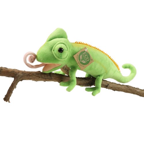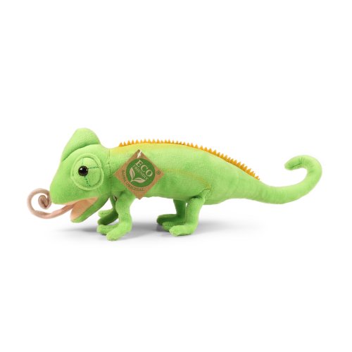 Plyšový chameleon měří 34 cm a díky těm nejkvalitnějším materiálům se řadí do Exkluzivní kolekce plyšových hraček značky Rappa. Díky ručnímu zpracování každého kusu navíc vypadá jako živý. Proč označení ECO-FRIENDLY? Rappa si je vědoma všech dopadů na životního prostředí, zaměřuje se na udržitelnost a omezení používání plastů na minimum. Proto je výplň hraček vyrobena z recyklovaných materiálů, zejména PET lahví. Ta je však zcela nezávadná a vhodná i pro děti od narození. FUN FACT: Věděli jste, že chameleoni mění barvu nejen pro maskování, ale hlavně kvůli komunikaci, regulaci teploty a díky speciálním nanokrystalům v kůži, které odrážejí různé vlnové délky světla?