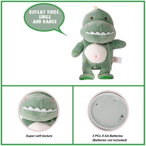 "Zpívám, umím chodit a zopakuji vše, co mi řekneš." Chodící a mluvící dinosaurus má roztomilý vzhled a opakuje písklavým hlasem vše, co se kolem říká.