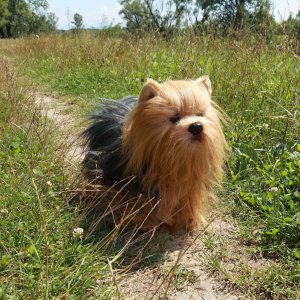 Roztomilý plyšový jorkšír ve velikosti 30 cm je vyroben z exkluzivní, velmi kvalitní plyše.