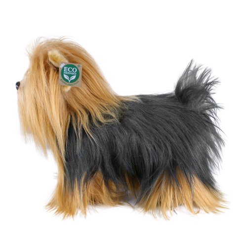 Plyšový pes rasy jorkšírský teriér měří 30 cm a díky těm nejkvalitnějším materiálům se řadí do Exkluzivní kolekce plyšových hraček značky Rappa. Díky ručnímu zpracování každého kusu navíc vypadá jako živý. Proč označení ECO-FRIENDLY? Rappa si je vědoma všech dopadů na životního prostředí, zaměřuje se na udržitelnost a omezení používání plastů na minimum. Proto je výplň hraček vyrobena z recyklovaných materiálů, zejména PET lahví. Ta je však zcela nezávadná a vhodná i pro děti od narození. FUN FACT: Věděli jste, že jorkšírští teriéři jsou známí svou dlouhou, hedvábnou srstí, která může dorůst až po zem, pokud se pravidelně upravuje?