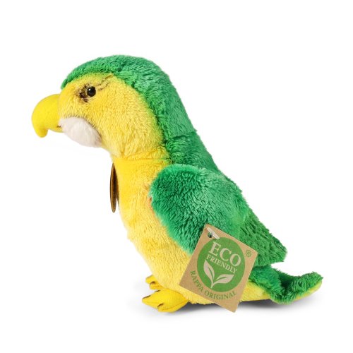 Plyšový papoušek měří 15 cm a díky těm nejkvalitnějším materiálům se řadí do Exkluzivní kolekce plyšových hraček značky Rappa. Díky ručnímu zpracování každého kusu navíc vypadá jako živý. Proč označení ECO-FRIENDLY? Rappa si je vědoma všech dopadů na životního prostředí, zaměřuje se na udržitelnost a omezení používání plastů na minimum. Proto je výplň hraček vyrobena z recyklovaných materiálů, zejména PET lahví. Ta je však zcela nezávadná a vhodná i pro děti od narození. FUN FACT: Věděli jste, že papoušci mají mimořádně vyvinutý zobák a jazyk, díky kterým dokážou napodobovat lidskou řeč a různé zvuky?