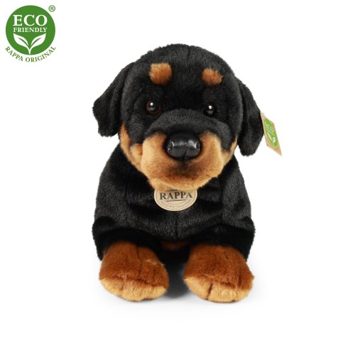 Roztomilý plyšový pes rotvajler ve velikosti 44 cm může být ideálním dárkem pro každého, kdo má rád zvířata nebo miluje přírodu. Je vyroben z měkkého a jemného materiálu, který je příjemný na dotek a je tak součástí exkluzivní kolekce plyšových hraček RAPPA. Co to vlastně ECO-FRIENDLY znamená? Výplň plyšové hračky je vyrobena z recyklovaných PET lahví. Tento materiál je zcela bezpečný, na omak nerozeznatelný od standardní výplně a plně atestovaný pro bezpečnost i těch nejmenších. Rozhodli jsme se jít zelenou cestou co nejméně zatěžující životní prostředí- cestou ECO-FRIENDLY.
