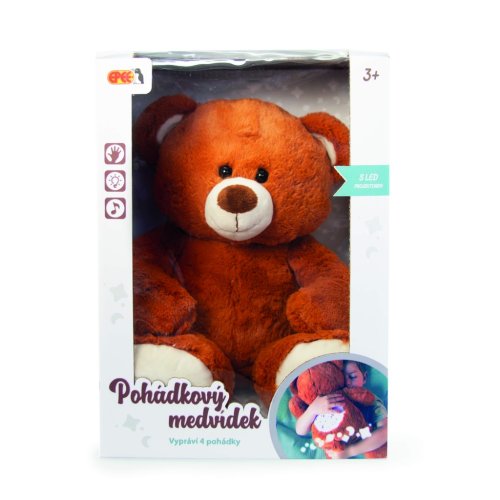 Medvídek je vybaven funkcí vyprávění čtyř klasických pohádek – O Červené Karkulce, O perníkové chaloupce, O Popelce a Sůl nad zlato. Hlasitost vyprávění lze nastavit na dvě úrovně, což umožňuje přizpůsobit zvuk prostředí v místnosti. Po 10 minutách nečinnosti se hračka automaticky vypne, čímž šetří baterie. Pro provoz jsou potřeba tři AAA baterie, které nejsou součástí balení.