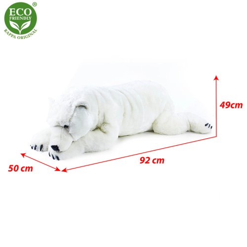 Krásný velký plyšový polární medvěd. Jeho velikosti je cca 109 cm a je vyroben z kvalitní heboučké plyše. Tento plyšový kousek je ideálním dárkem pro malé i velké! Co to vlastně ECO-FRIENDLY znamená? Výplň plyšové hračky je vyrobena z recyklovaných PET lahví. Tento materiál je zcela bezpečný, na omak nerozeznatelný od standardní výplně a plně atestovaný pro bezpečnost i těch nejmenších. Rozhodli jsme se jít zelenou cestou co nejméně zatěžující životní prostředí- cestou ECO-FRIENDLY.