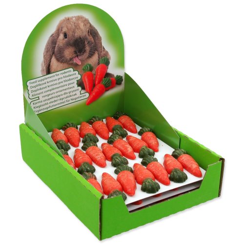 Sušenky ve tvaru mrkviček pro hlodavce.