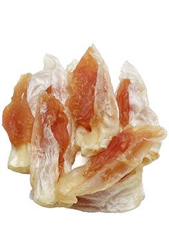 Masová pochoutka pro psy, králičí ucho plněné kuřecím masem.