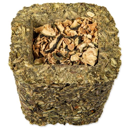 Složení: hrách, škrob, semena travin, semena kanárských travin, sušené kopřivy 4,8 %, pohanka, sušená petržel 1,8 %, sušená mrkev 1,7 % Náplň (sušená mrkev 0,4 %/ sušený pastinák 0,4 %/ sušená cuketa 0,4 %/ sušené okvětní lístky růže 0,3 %/ sušené květy měsíčku lékařského 0,3 %/ sušené květy chrpy 0,3 %), konopné semeno, lněné semeno, semena fenyklu, sušená máta peprná 1,2 %, sušená pampeliška 1 %, semena černého kmínu.