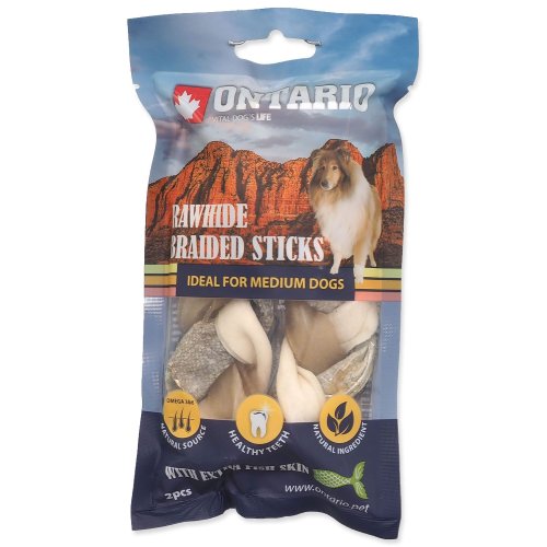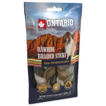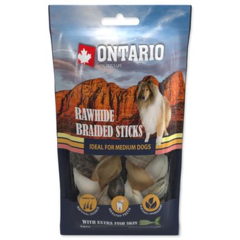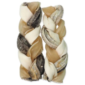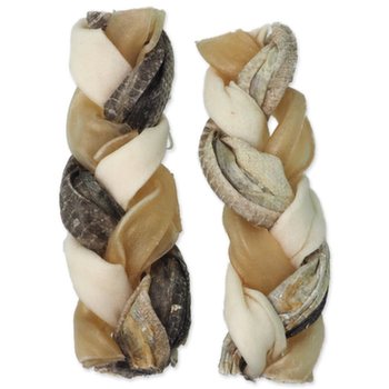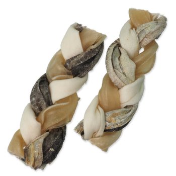 Pletená tyčinka ze surové kůže s extra rybí kůží – doplňkové krmivo pro dospělé psy, podávejte jako pochoutku.