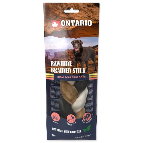 Pletená tyčinka ze surové kůže ochucená extraktem ze zeleného čaje – doplňkové krmivo pro dospělé psy, podávejte jako pochoutku. Ideální pro psy velkých plemen.