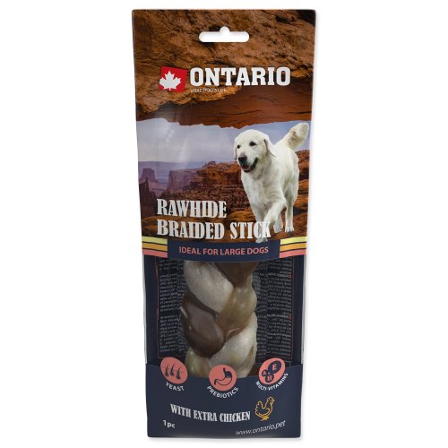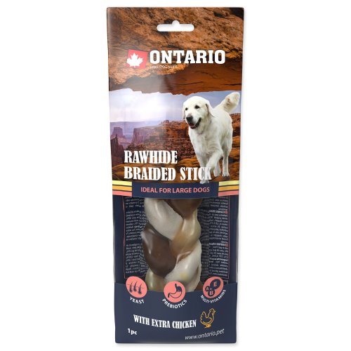 Pletená tyčinka ze surové kůže s?extra kuřecím - doplňkové krmivo pro dospělé psy, podávejte jako pochoutku. Ideální pro velká plemena.