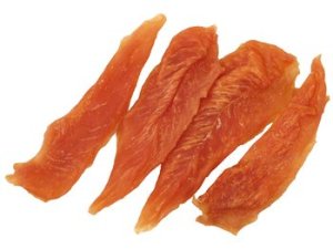 Složení: kuřecí prsa 91,9%, glycerin 5,4%, bramborový škrob 1,8%, sůl 0,9%.