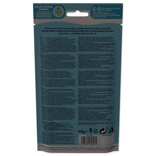 | Upozornění | Výrobek může obsahovat stopy arašídů a?jiných ořechů.Uchovávejte sáčky mimo dosah kojenců, malých dětí a domácích zvířat. Pamlsek pouze pro psy. Výrobek obsahuje sáček s?deoxidačním účinkem, který není určen ke konzumaci. |