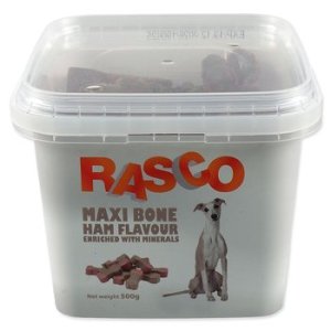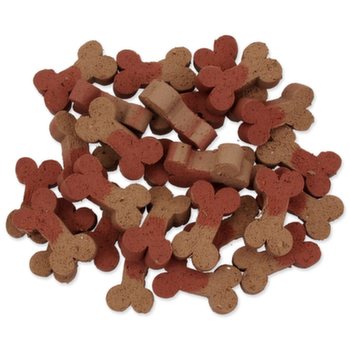 Obiloviny, maso a vedlejší produkty živočišného původu (min. 4 % vepřové), cukry, tuky a oleje, sušená syrovátka, vedlejší produkty rostlinného původu, Aditiva: barvivo, aroma, kalcium 5000 mg/kg (ES přísady). S konzervanty a antioxidanty (ES přísady). Návod ke krmení: slouží jako pochoutka za odměnu k běžné denní krmné dávce. Podávejte 1-2 kusy denně. Vždy zajistěte zvířeti přístup k čerstvé pitné vodě. Skladujte na suchém a chladném místě!