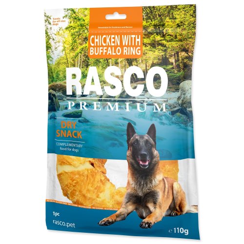 Pochoutka Rasco Premium buvolí kůže obalená kuřecím, kruh 110g